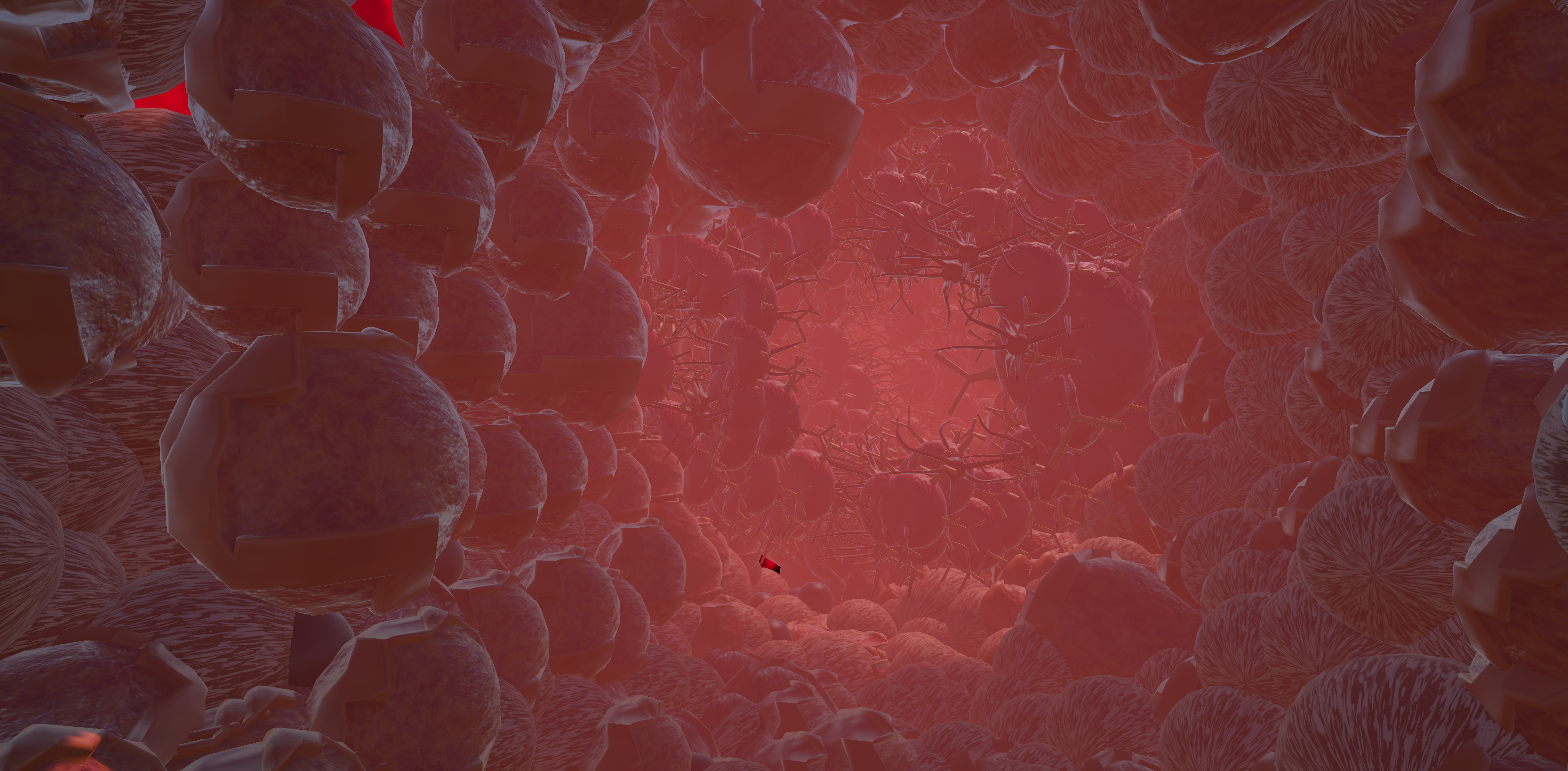 You are a virus and your mission is to infect your host by navigating through a procedurally generated vascular system, infecting organs like the heart, lungs, and kidneys, with the ultimate goal of finding and crossing the blood brain barrier to fully infect your host.